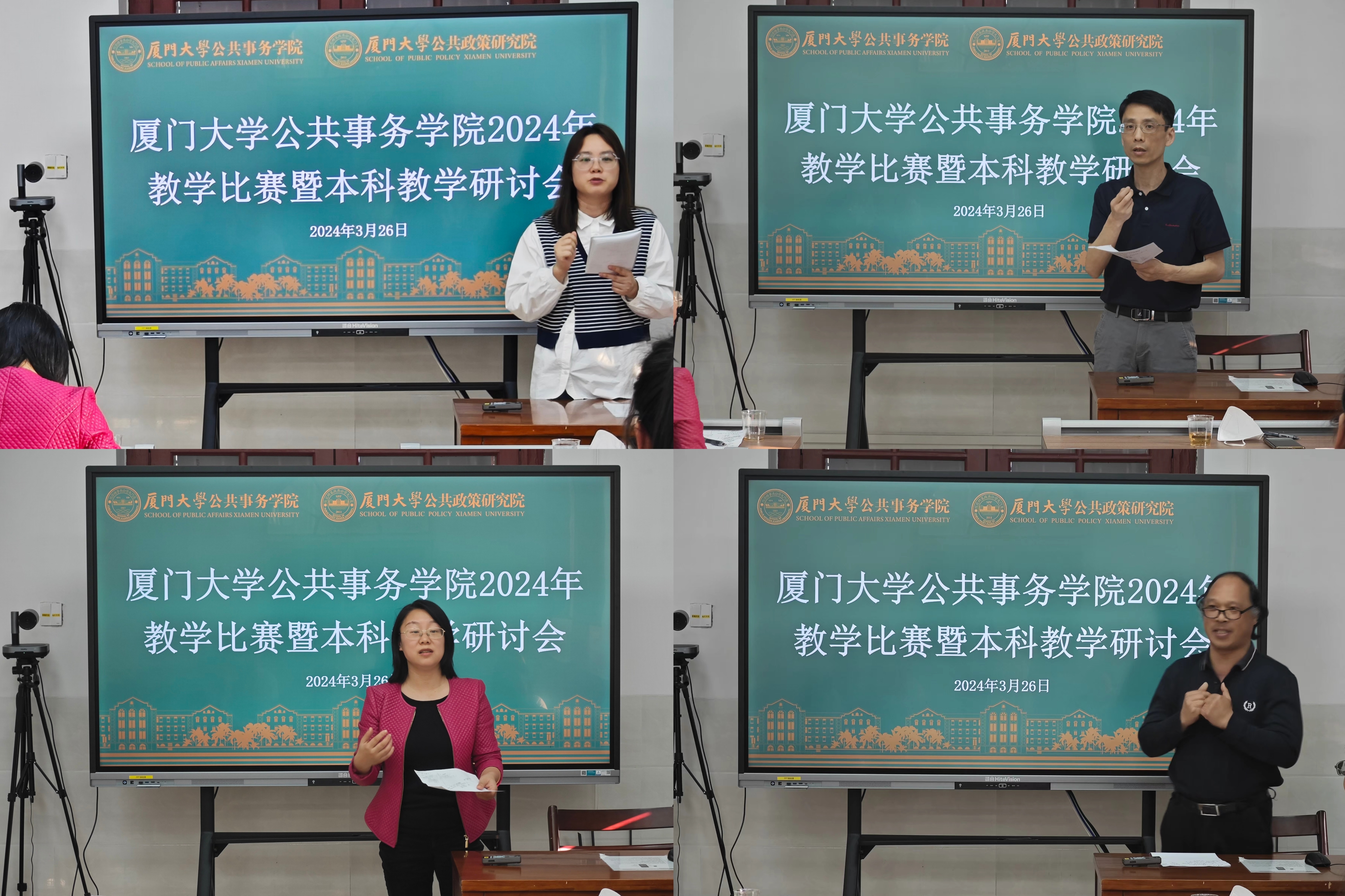 为加快建设高水平教育,提升青年教师教学能力,适应新时期教学工作发展需要,根据厦门大学第十九届教学比赛工作安排,2024年3月26日下午,公共事务学院青年教师教学技能比赛暨本科教学研讨会于成智楼101顺利举办。