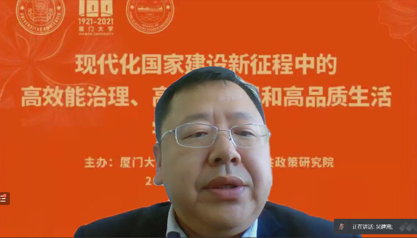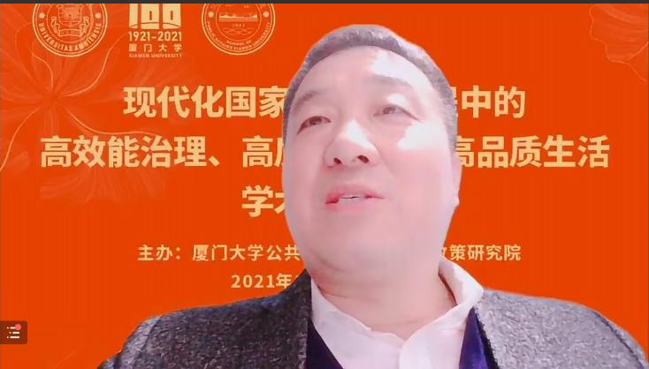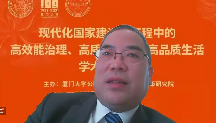 上午的主题演讲由厦门大学社科处处长、公共事务学院教授高和荣主持,西北大学公共管理学院院长雷晓康教授、华中师范大学中国农村研究院张大维教授、兰州大学管理学院兼中国政府绩效管理研究中心王学军教授、中南大学地方治理研究院副院长胡春艳教授、厦门大学公共政策研究院于文轩教授、厦门大学公共事务学院副院长吕志奎教授、厦门大学公共事务学院公共管理系主任李德国教授分别作题为《高品质生活测度指标体系建构研究》《协商资本与协商能力嵌合:高质量协商的发展逻辑》《合作生产何以创造公共价值》《中央生态环境保护督察制度的演化路径》《制度执行力与责任》《“平急结合”转换机制与高效能应急管理—疫情防控隔离用房管理的厦门样本》《福建推进社会主义现代化阶段性目标举措研究》的主题演讲。