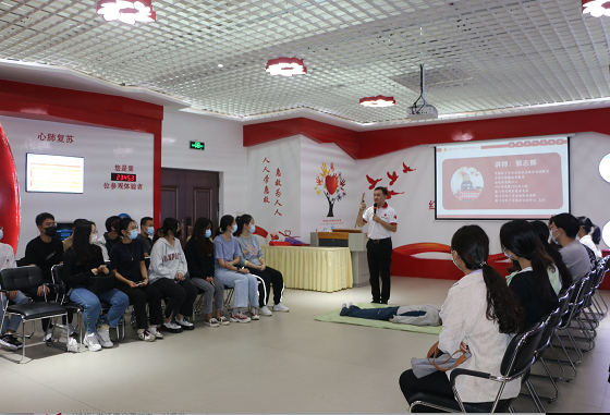 签约授牌仪式结束后,厦门市红十字救护培训中心主任郭志辉为公共事务学院师生开展应急救护培训。郭老师通过图文、视频和问答及演示的方式生动风趣的为师生讲解了心肺复苏术和自动体外除颤器(AED)的操作要领,并邀请师生进行实际操作训练。