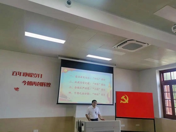 吕志奎教授以《学党史、悟思想、明治理、守廉正——从治水领悟吏治之道》为题作主题分享。他通过学习习近平总书记的治水观、山水观,梳理出“四生”“四要”“三清”“四治”理论,讨论了治吏、治党、治国等议题。他指出,我们党治国理政的密码,就是始终坚持以人民为中心,就是习近平总书记提出的“江山就是人民,人民就是江山”的治国理政思想,并以此鞭策同学们在学习和工作中应该明治理、守廉洁。