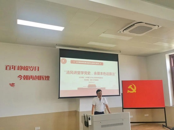 2021年6月27日上午,由厦门大学公共事务学院党委主办、学生廉政文化理论研究社团爱廉社承办的“清风讲堂学党史,永葆本色话廉洁”廉洁自律主题学习教育活动在公共事务学院成智楼108教室举行。本次活动也是公共事务学院党委党史学习教育廉政文化专题学习的重要活动之一。