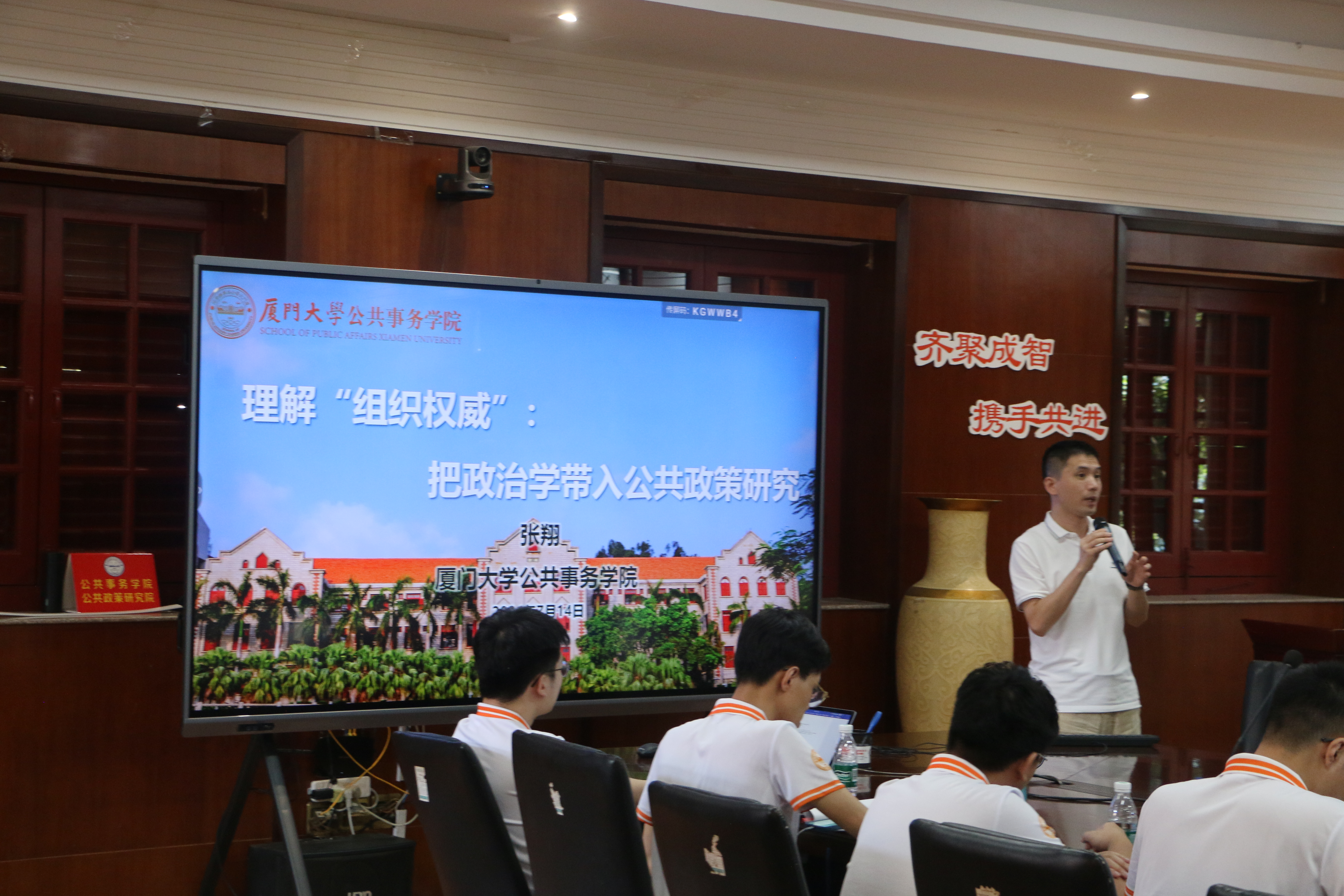 在政治学系的学术沙龙中,林雪菲教授首先介绍了政治学系的基本情况,其中包括学科建设、研究方向、课程设置、学术活动、实践调研、就业前景等;王伟光教授以解释中美关系为例,根据时期划分详谈了影响中美关系的政治、经济、军事等因素以及背后形成的权力结构,并就中美关系的未来走向提出了自己的见解;张翔教授围绕“组织权威”,将政治学带入到公共政策的研究情境中,探讨了中西方公共政策过程的结构差异,介绍了既有研究的两种视角,最后提出了“叙事与共识”的新视角。现场提问环节,营员们就学术上的论文研究、中西政治观差异,以及未来学习中的导师选择、专业考核等方面积极踊跃提问,与老师展开了深入浅出的对话与互动。