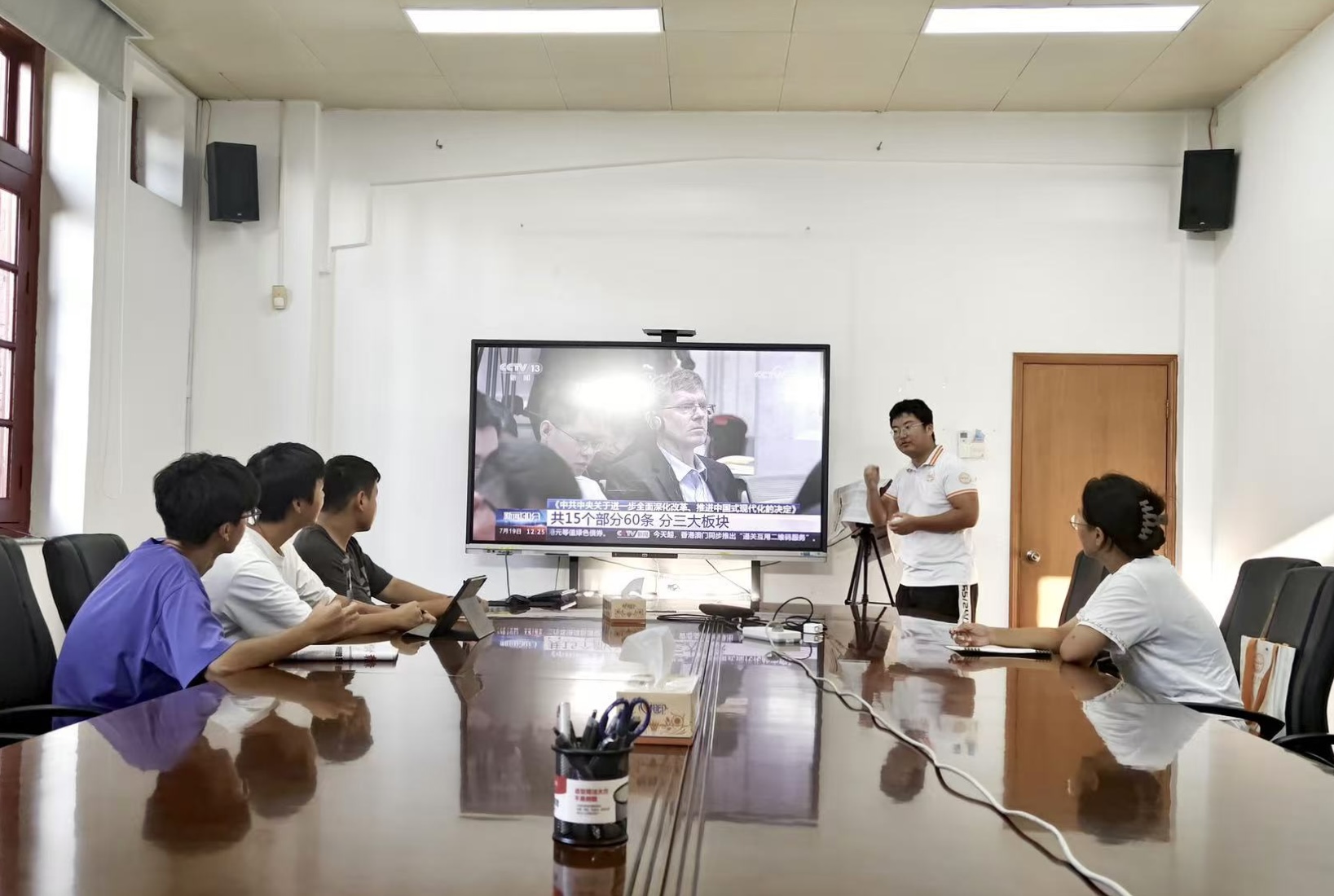 与会人员集体观看了中共中央新闻发布会介绍解读党的二十届三中全会精神的视频,农民之子社团社长冉阳光以中国式现代化的总任务、中心任务、首要任务、重大任务为引,剖析了我国进一步全面深化改革的动力源泉,强调了党的二十届三中全会的重要时代意义,号召社团骨干们深入理解全会精神,并将其融入日常学习和工作中。他表示,社团成员应以会议精神为指引,不断提升自己的综合素质,争做让党放心、爱国奉献、担当民族复兴重任的时代新人,汇聚推动时代前行的青年合力。