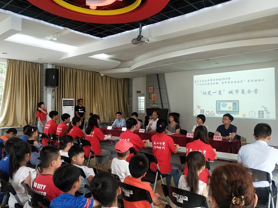 7月19日下午,厦门大学公共事务学院第二届‘阳光一夏’城市夏令营结营仪式在前埔北社区隆重举行,为期10天的城市夏令营活动圆满落幕。本次夏令营是公共事务学院党委开展“青春心向党,建功新时代”主题教育实践活动的重点项目之一,也是学院落实与前埔北社区合作共建协议、联合开展“党的十九大代表进校园,青年学生进社区”系列活动的重要一环。