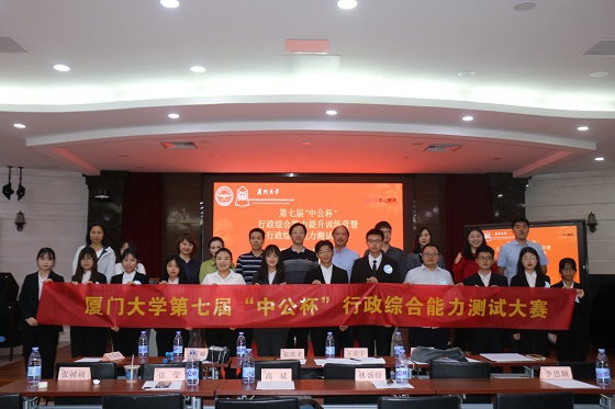 4月24日晚19:00,厦门大学第七届“中公杯”行政综合能力测试大赛决赛在联兴楼多功能厅举行。本次大赛由厦门大学教务处、学生工作处和公共事务学院联合主办,邀请了公共事务学院副教授张庆才、助理教授王荣宇,学生工作处就业指导科副科长占群丽、厦门中公教育项目负责人石瀚博、黄雪灵担任评委。学生工作处副处长高斌、公共事务学院党委副书记林盛铨、团委书记徐莹、辅导员李思颖、张祯祯出席观摩。