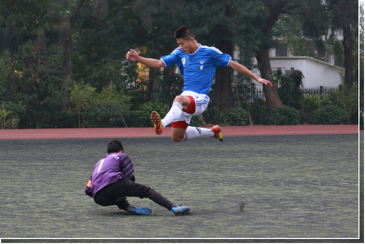 12月13日上午,校园内还小雨淅沥,但天公作美,待比赛时太阳早已显露照耀,迫不及待地一睹“足协杯”最后一场争雄之役。历时两个多月,“足协杯”终于迎来了决赛。公共事务学院(下面简称公事)足球队员在此次比赛中,一路争先——小组赛、八强赛、半决赛,以五胜两平的不败战绩闯进决赛,面对“足协杯”最后一场的天王山之战,公事主力如28号贺桑迪、88号赵煜、9号王君德、10号Benjamin、22号李海山等球员全部上场,以最强大的阵容迎接这冠军争夺战。这次比赛两个“小冤家”——公共事务学院和管理学院(下面简称管院)在上个学期的校级足球联赛当中携手小组淘汰,当时谁能想到这个学期的足协杯会轮到这两只队伍大杀四方呢?更有趣的是,在之前的小组赛中,公事曾以4:2的战绩力挫管院,不知道两强再次交锋又会给我们带来怎样的精彩表现?