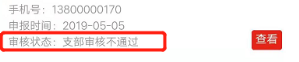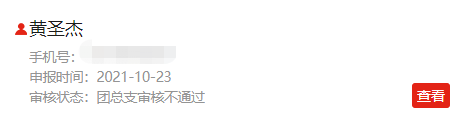 点击“通过”,页面显示“待团总支审核”;若点击“不通过”,页面显示“支部审核不通过”。如下图所示: