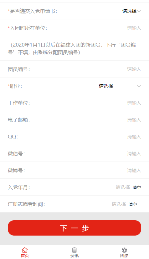 ②信息填报。需按要求填写资料并提交,带红色*的为必填内容,其他为非必填内容。