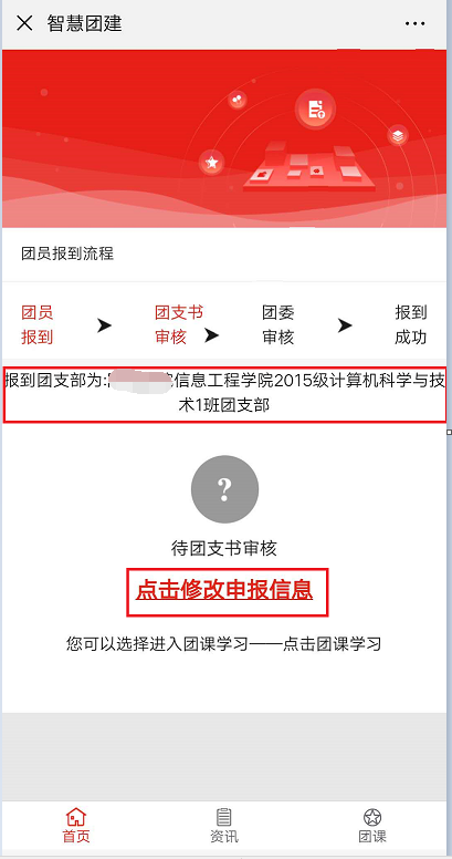 注意:若报到进度显示待团委审核,此时不能修改信息。