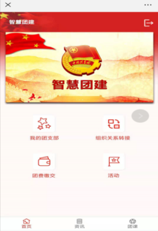 新生团员在“福建共青团”微信公众号点击下方“智慧团建”模块,通过注册账号的手机号短信验证码登录智慧团建微官网,进入首页。如下图所示: