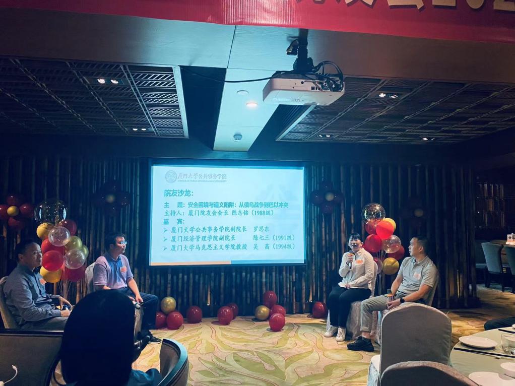 随后,一场以“安全困境与道义陷阱:从俄乌战争到巴以冲突”为主题的院友沙龙重磅开讲。罗思东副院长和2名沙龙嘉宾:厦门经济管理学院副院长陈七三院友、厦门大学马克思主义学院教授吴茜院友一同为大家分享了当前最受关注的国际地缘政治事件带给我们的深刻启示。嘉宾们讨论热烈、院友们听得津津有味,这既是一场前沿学术探讨的盛宴,更展现了公事人“立学公事、立心天地、立命生民”的浓厚情怀。