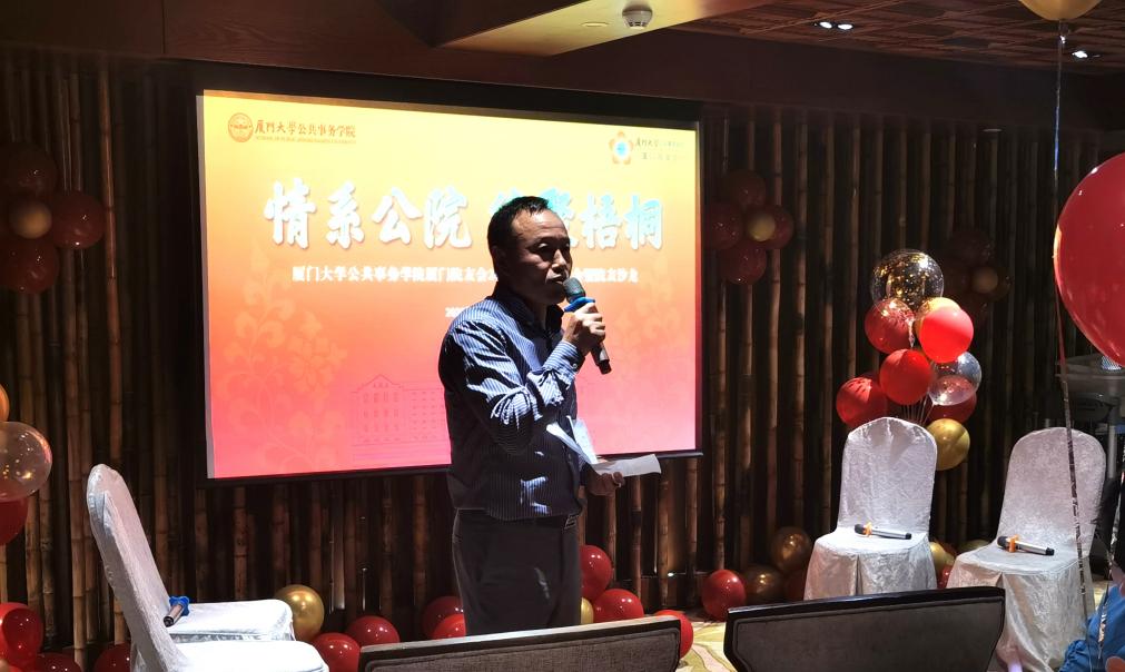情系公事、缘聚梧桐。适逢鹭岛厦门金秋时节,10月28日,公共事务学院厦门院友会在母校林梧桐楼成功举办2023金秋联谊会暨院友沙龙活动。公共事务学院党委书记刘艳杰老师、原院长朱仁显教授、党委副书记林盛铨老师、副院长罗思东教授、副院长李艳霞教授,院友、嘉庚学院纪委书记陈东军老师和学院部分教师代表、厦门院友会名誉会长陈万胜及院友会相关成员、北京院友会执行会长巴海鹰、60余名来自福建、广东、北京、辽宁等地院友一同返校相聚,同叙校园情谊,共话院友发展。活动由厦门院友会会长陈志铭主持。