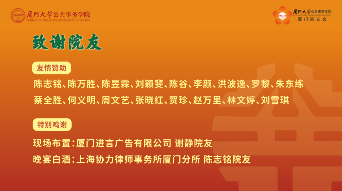 每一次的相聚都是为了下一次更好的相遇。在公共事务学院迎来建院20周年之际,厦门院友会将继续本着服务院友、凝聚院友的初心,在学院支持下举办更为丰富多彩的院友活动,努力打造院友们人生道路上最可信赖的温馨家园。