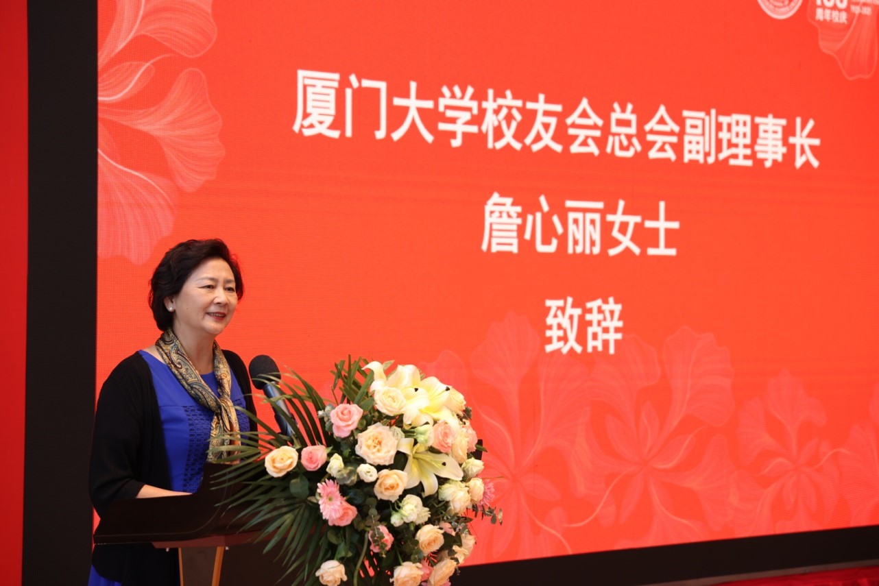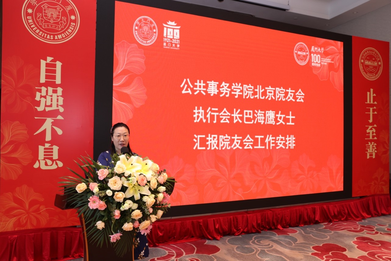 詹心丽回顾了公共事务学院的历史,总结了厦大百年校庆的丰硕成果,展望了厦门大学北京校友会公共事务学院分会的未来。她表示,值中国共产党成立一百周年,厦门大学百年校庆之机,院友会的成立是母校百年校友工作的新起点,向院友会成立大会的成功举办表示衷心的祝贺。