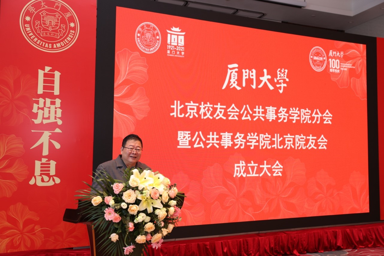 孙亚夫讲述了厦门大学北京校友会的历史,指出厦门大学北京校友会公共事务学院分会作为北京校友会的第16个分会,要起到联络北京校友感情,建立沟通桥梁的作用,希望公共事务学院分会能做好服务校友、回馈社会的各项工作,不断开拓创新,取得新的成绩!