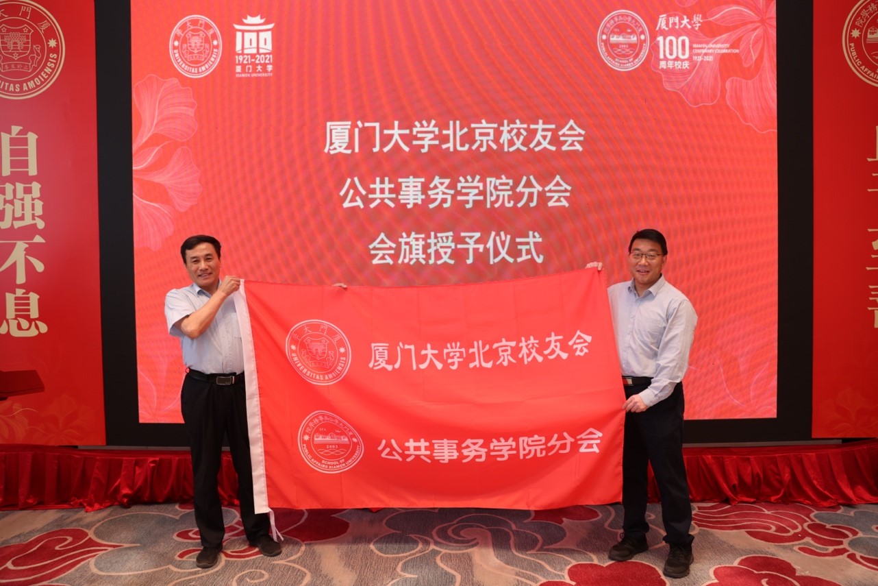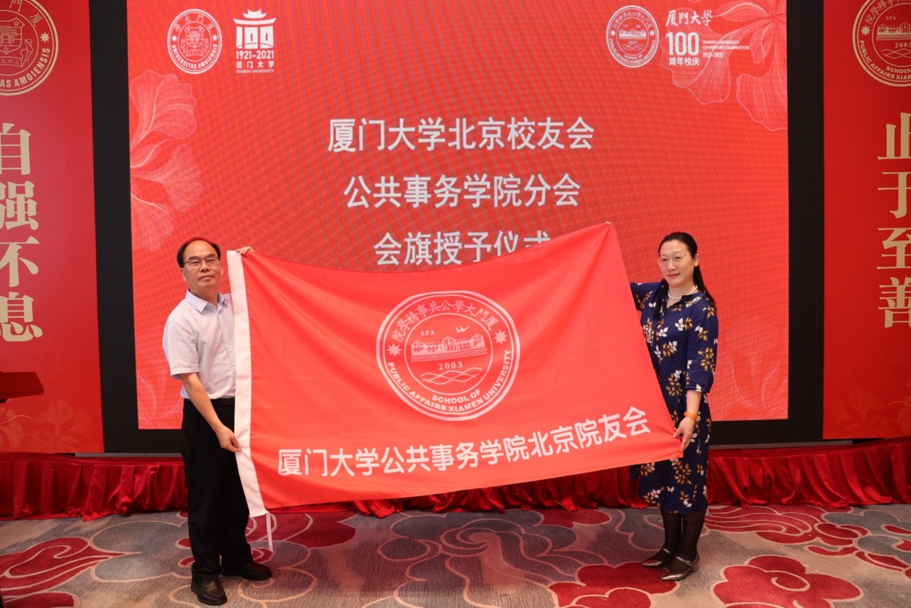 随后,会议举行院友会授旗仪式。周五一向杨雪冬授予厦门大学北京校友会公共事务学院分会会旗;朱仁显向巴海鹰授予厦门大学公共事务学院北京院友会会旗。