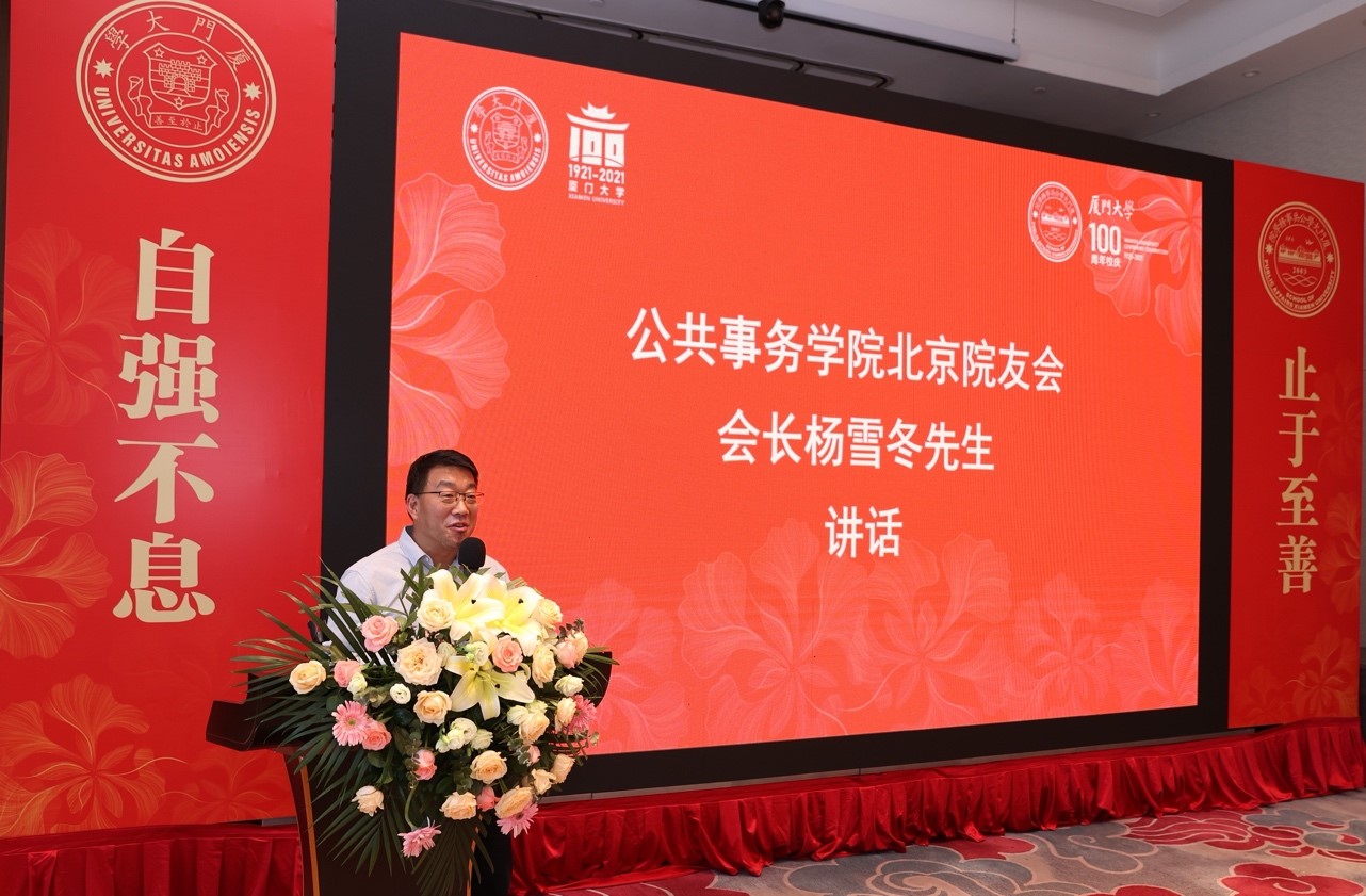 杨雪冬在讲话中首先感谢了为此次大会做出大量准备工作的院友,并满怀深情地表示,正是因为母院传承了厦门大学海纳百川的山海情怀和自强不息的坚韧精神,并具备强烈的“立学公事、立心天地、立命生民”的公共意识,才使得政治学系和公共事务学院校友虽散于四方,却又能够常常心系母系母院,共聚一堂。