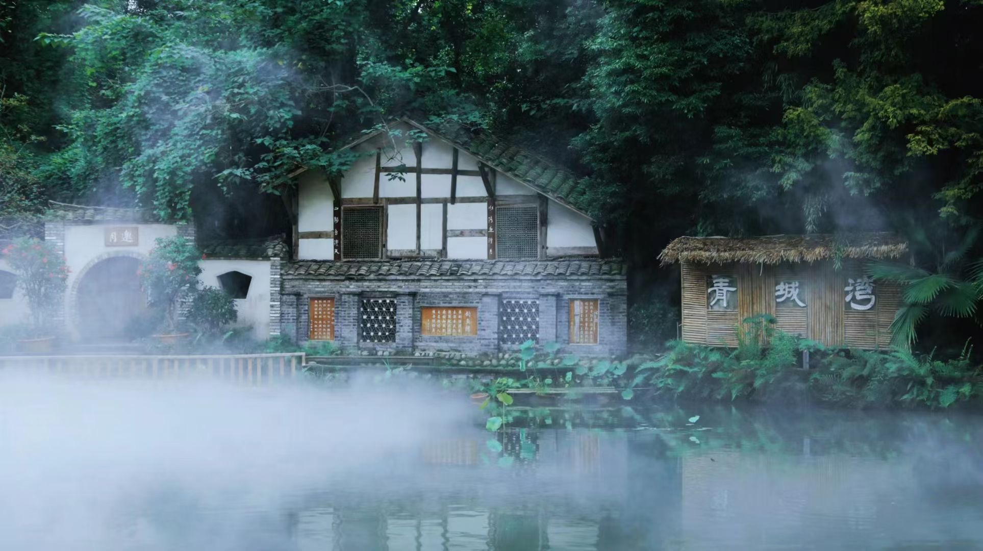 园区观景幅员近300亩,其中一半面积为水域和湿地。青城湾作为中国田园诗歌主题庄园,以新古典乡村生活为文化形态,以农文旅多产融合为产业形态,以川西林盘原乡风情为空间形态。庄园内环境优美、四季如画,茅草房、小木屋、豆花饭、河鲜、烧烤、传统土菜等成为吸引人们的重要理由。