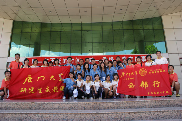 我与研究生支教团结缘也是2009年的夏天,那时叶仲霖学长刚从海原支教回来,到漳州校区跟西部梦想社团的学弟学妹分享了他的支教经历。到现在我还记得他说:“我深深地相信,在这个世界上,有爱的地方,就有希望;就有纯真美好的欢笑,就会春暖花开。我希望给西部的孩子带去爱和希望,等待春暖花开。”他朴实的语言和真挚的情感深深感染了我。是啊,西部也是我的故乡,孩子们所经历的我也感同身受,我应该为他们做些什么。学长的经历激励了我,他也成为了我奋斗的榜样。