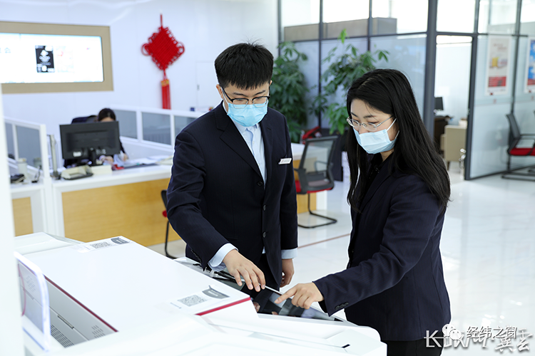中国银行容城支行党支部书记、行长刘相玉(右)在工作中。长城网·冀云客户端记者 康紫祎 摄