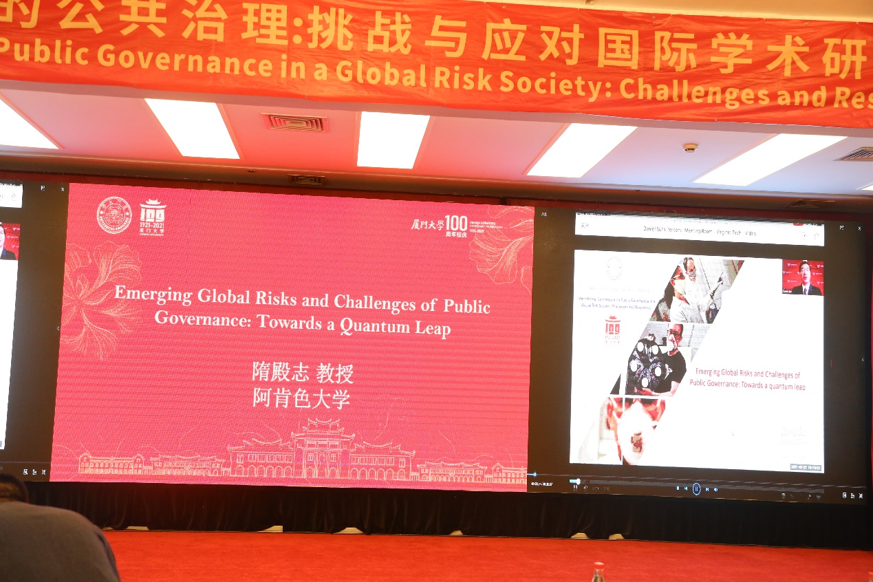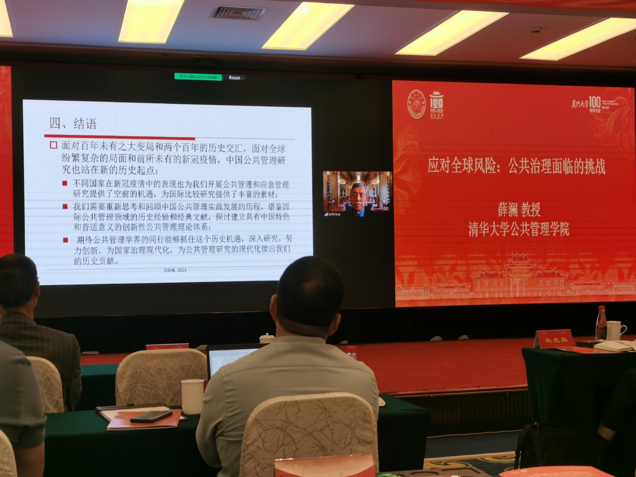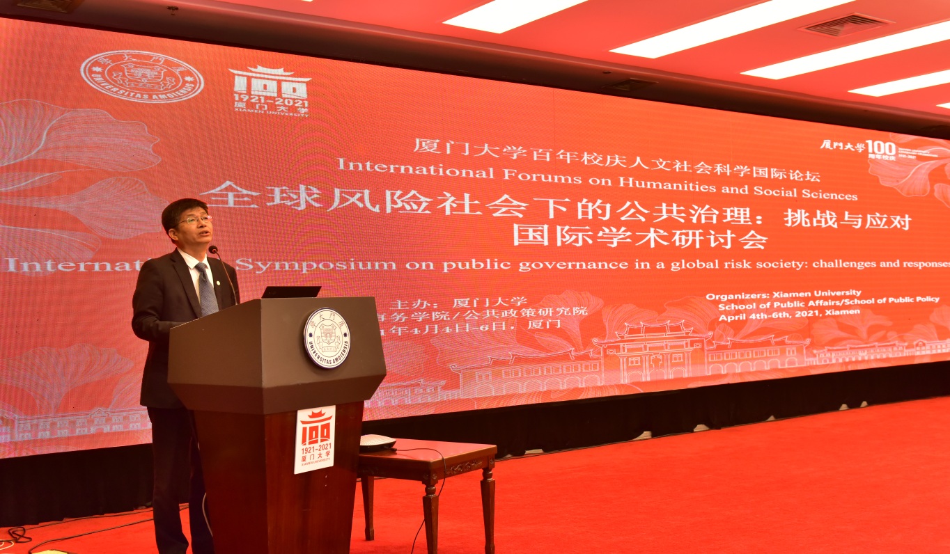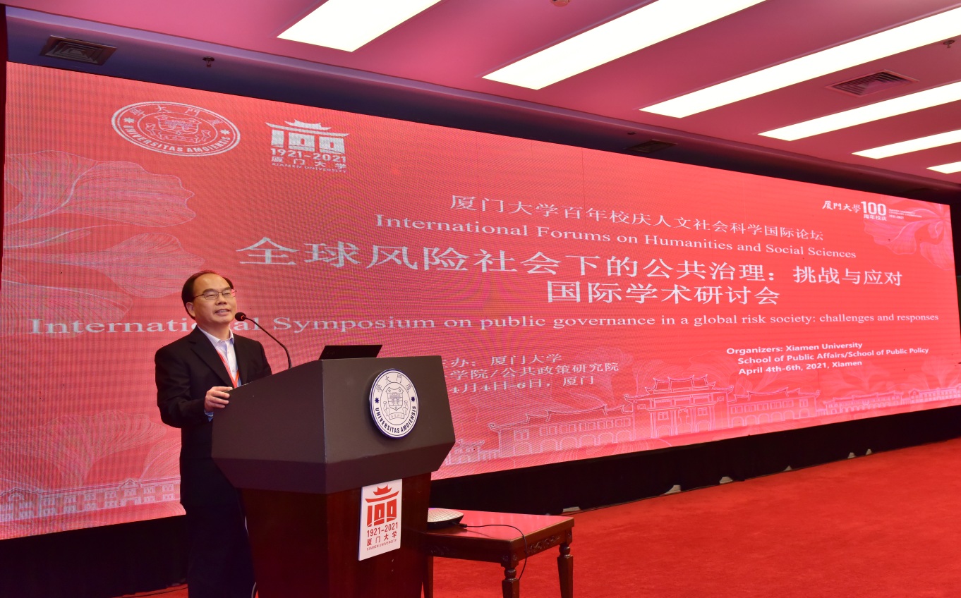 仲春鹭岛,风和日丽。2021年4月5日,在厦门大学百年校庆之际,厦门大学人文社会科学国际论坛暨“全球风险社会下的公共治理:挑战与应对”国际学术研讨会在厦门宾馆隆重举行。本次国际学术研讨会由厦门大学主办、厦门大学公共事务学院和公共政策研究院承办,来自清华大学、中国社会科学院、南开大学、西安交通大学、东北大学、哈尔滨工业大学、复旦大学、南京大学、浙江大学、中山大学、南京农业大学、南京审计大学、湖南农业大学、香港大学和哈佛大学、罗格斯大学、阿肯色大学、英国南安普敦大学等科研机构的专家学者和光明日报理论部、博览群书杂志社、中国社会科学杂志社、中国行政管理杂志社、管理世界杂志社和公共管理学报杂志社的主编或编辑以及厦门市应急管理局、福州市应急管理协会的实务专家就全球风险社会下的公共治理学科发展、理论进展、实践创新和机遇挑战等相关问题进行研讨。