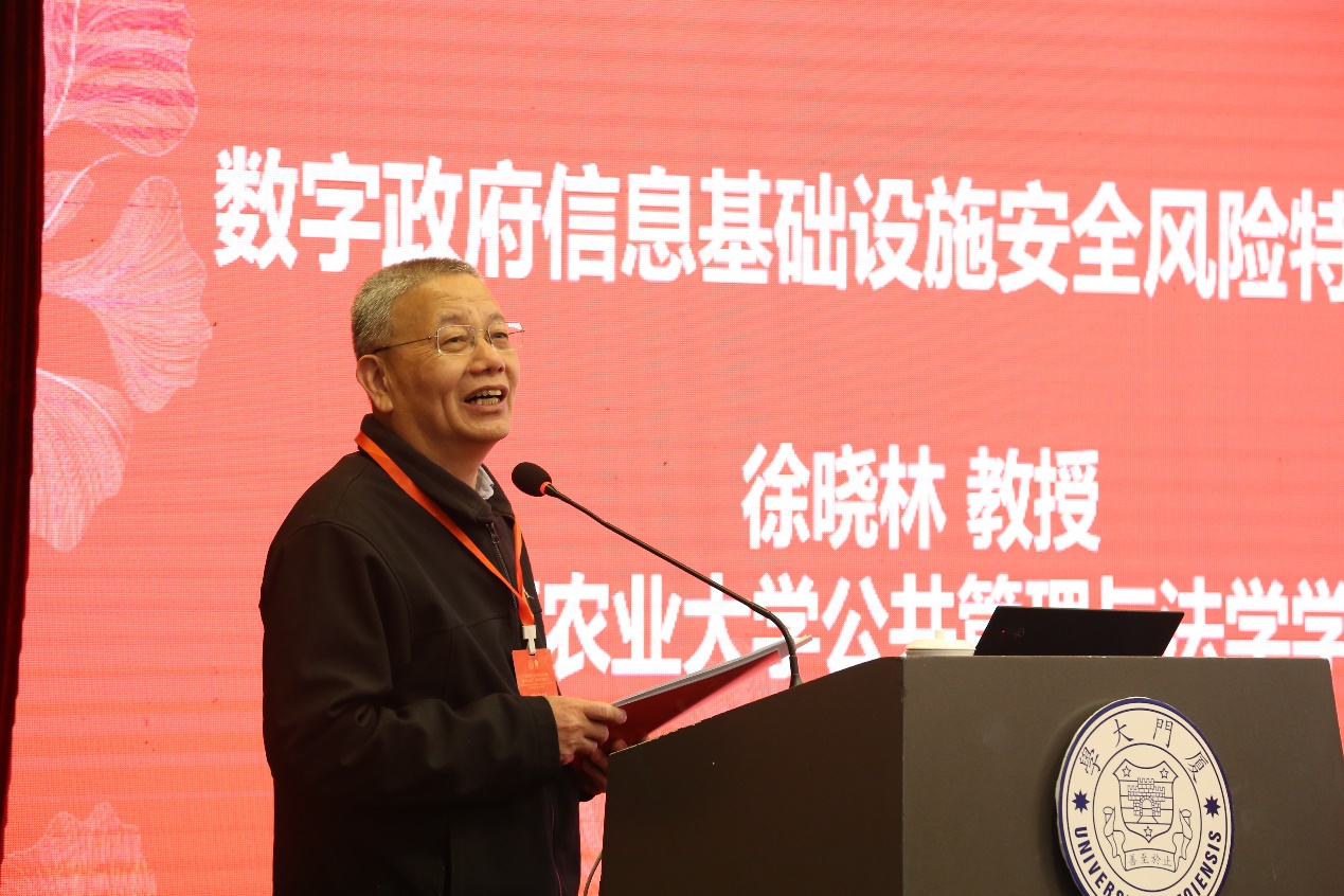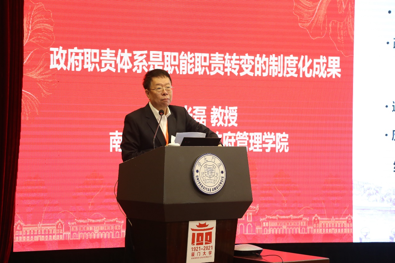 上午第一场主题报告由厦门大学公共事务学院黄新华教授主持,清华大学公共管理学院薛澜教授、南开大学周恩来政府管理学院朱光磊教授、浙江大学公共管理学院郁建兴教授、复旦大学国际关系与公共事务学院竺乾威教授、湖南农业大学公共管理与法学学院徐晓林教授、西安交通大学公共政策与管理学院李树茁教授、南京农业大学公共管理学院欧名豪教授、南京审计大学公共管理学院金太军教授、中国行政管理杂志社解亚红主编分别做题为《应对全球风险:公共治理面临的挑战》《政府职责体系是职能职责转变的制度化成果》《公共行政的新进展:理论与实践》《变动环境中的政府治理能力及其提升》、《数字政府信息基础设施安全风险特征研究》《农村家庭养老风险与应对》、《存量时代的规划管控与土地利用政策》《当下社会风险点分析——以新生代农民工为例》《公共治理中的中国元素》的主旨演讲。
