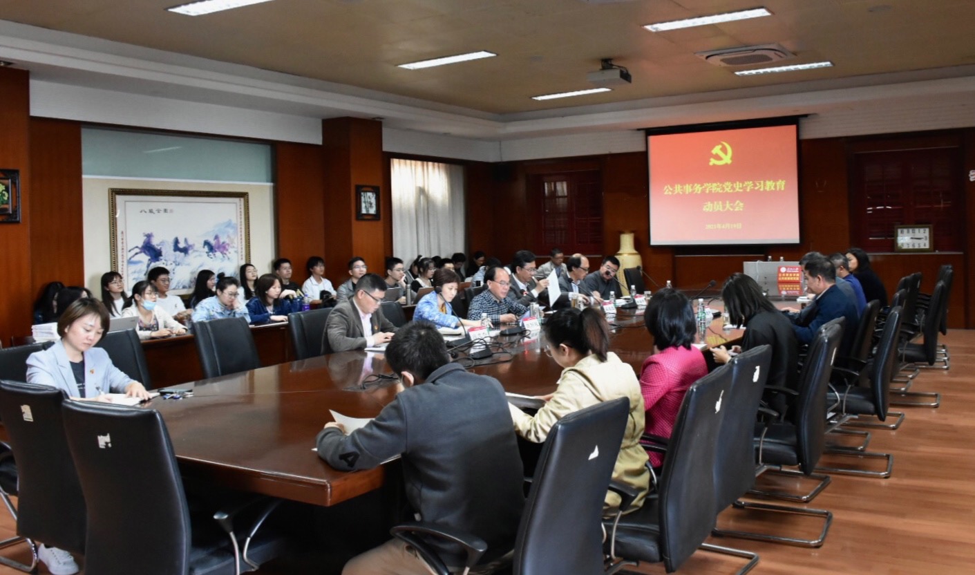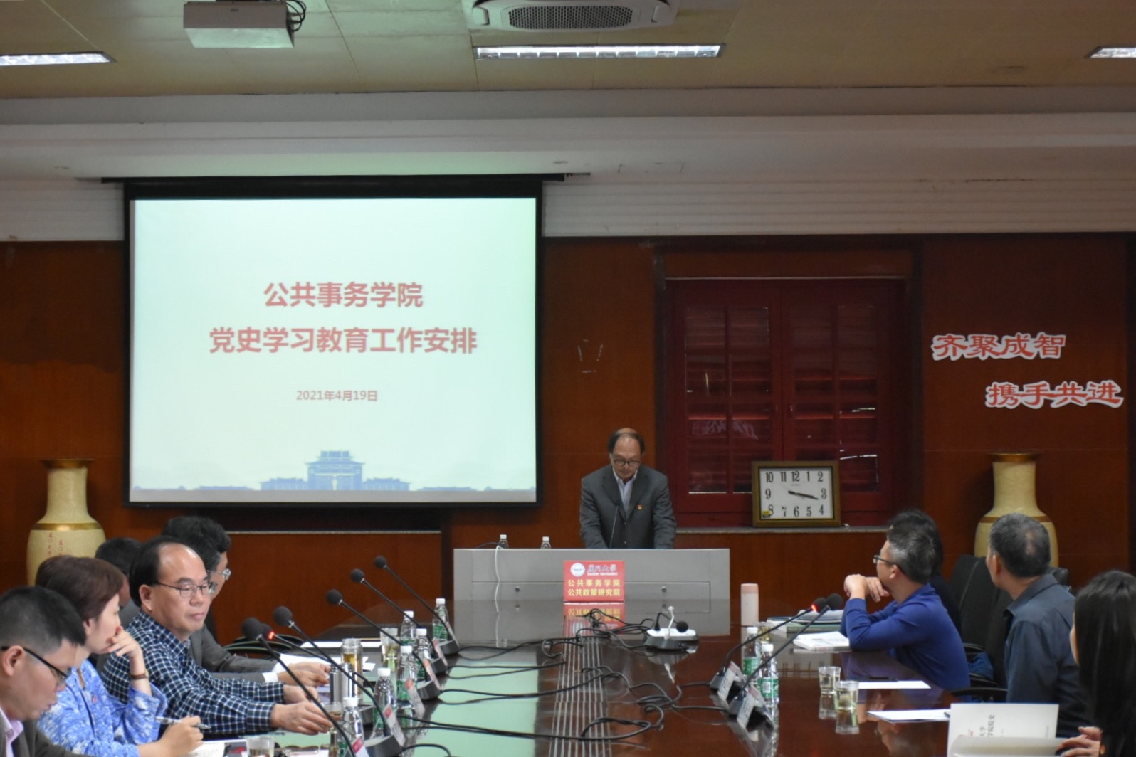 4月19日下午,公共事务学院党委在成智一301会议室召开党史学习教育动员大会,就学院开展党史学习教育进行动员部署。校党委党史学习教育第三指导组组长游泽民、基层党建工作联络员林自和到会指导。大会由学院院长朱仁显主持。