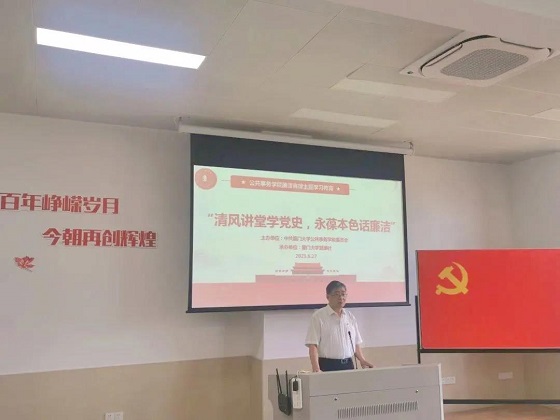 2021年6月27日上午,由厦门大学公共事务学院党委主办、学生廉政文化理论研究社团爱廉社承办的“清风讲堂学党史,永葆本色话廉洁”廉洁自律主题学习教育活动在公共事务学院成智楼108教室举行。本次活动也是公共事务学院党委党史学习教育廉政文化专题学习的重要活动之一。