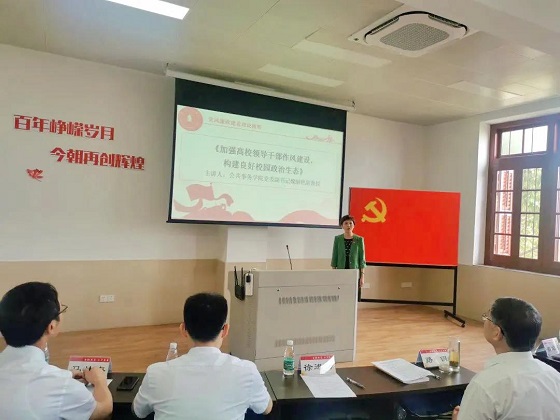魏丽艳副教授作关于《加强高校领导干部作风建设,构建良好校园政治生态》的主题分享。她强调了建设风清气正的校园政治生态的重要意义,并从校园干部建设、文化建设、廉政建设和作风考核机制等四个方面阐述了良好校园政治生态的本、基、根、源。