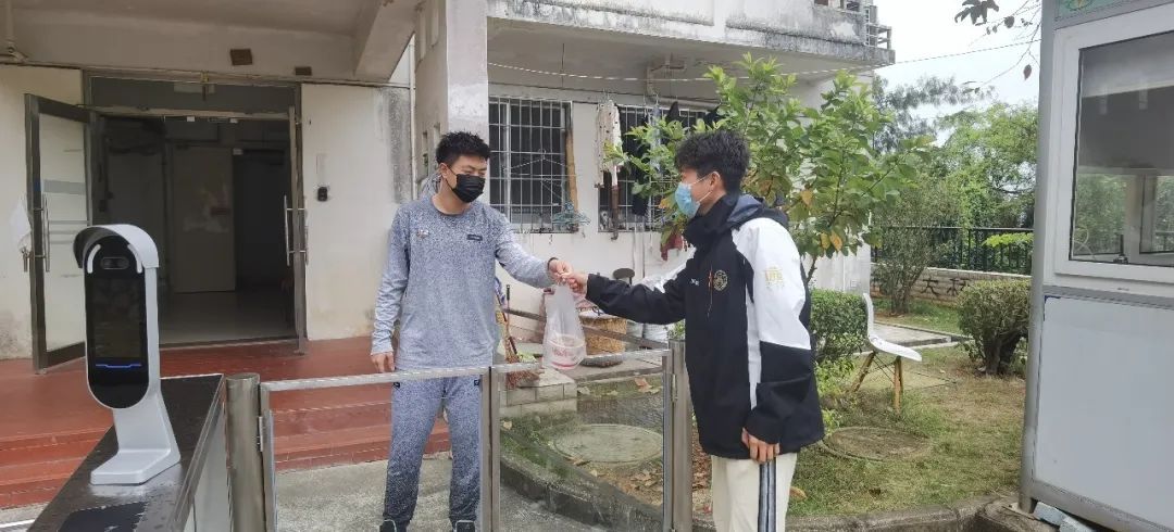 隔离不隔爱,温情抗疫情,公事学子化身“派送员”,每天按时为居家健康监测无法出宿舍的同学们送饭,为同学的日常生活提供保障。