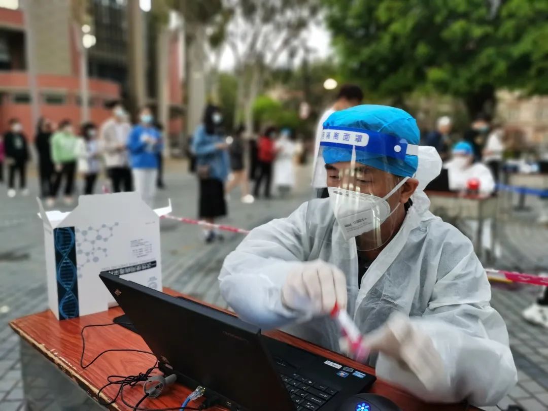 为配合学校开展全员核酸检测,我院教工党员冲锋在前,积极参与志愿服务工作,协助医护人员开展校内全员核酸检测。志愿者们布置核酸检测点,在现场维护秩序,协助医护人员登记扫码……忙碌的身影是志愿者与医护人员为跑赢疫情,守护校园的最美模样。