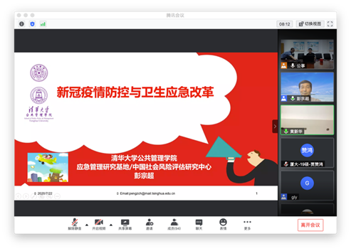 2020年7月22日晚7点,清华大学公共管理学院党委书记、应急管理研究基地/中国社会风险评估研究中心主任彭宗超教授受邀为公共事务学院的同学们进行了一场深入浅出的精彩讲座,题为“新冠疫情防控与卫生应急改革”。本次讲座由厦门大学公共事务学院党委书记黄新华教授主持,于线上线下同步开展。