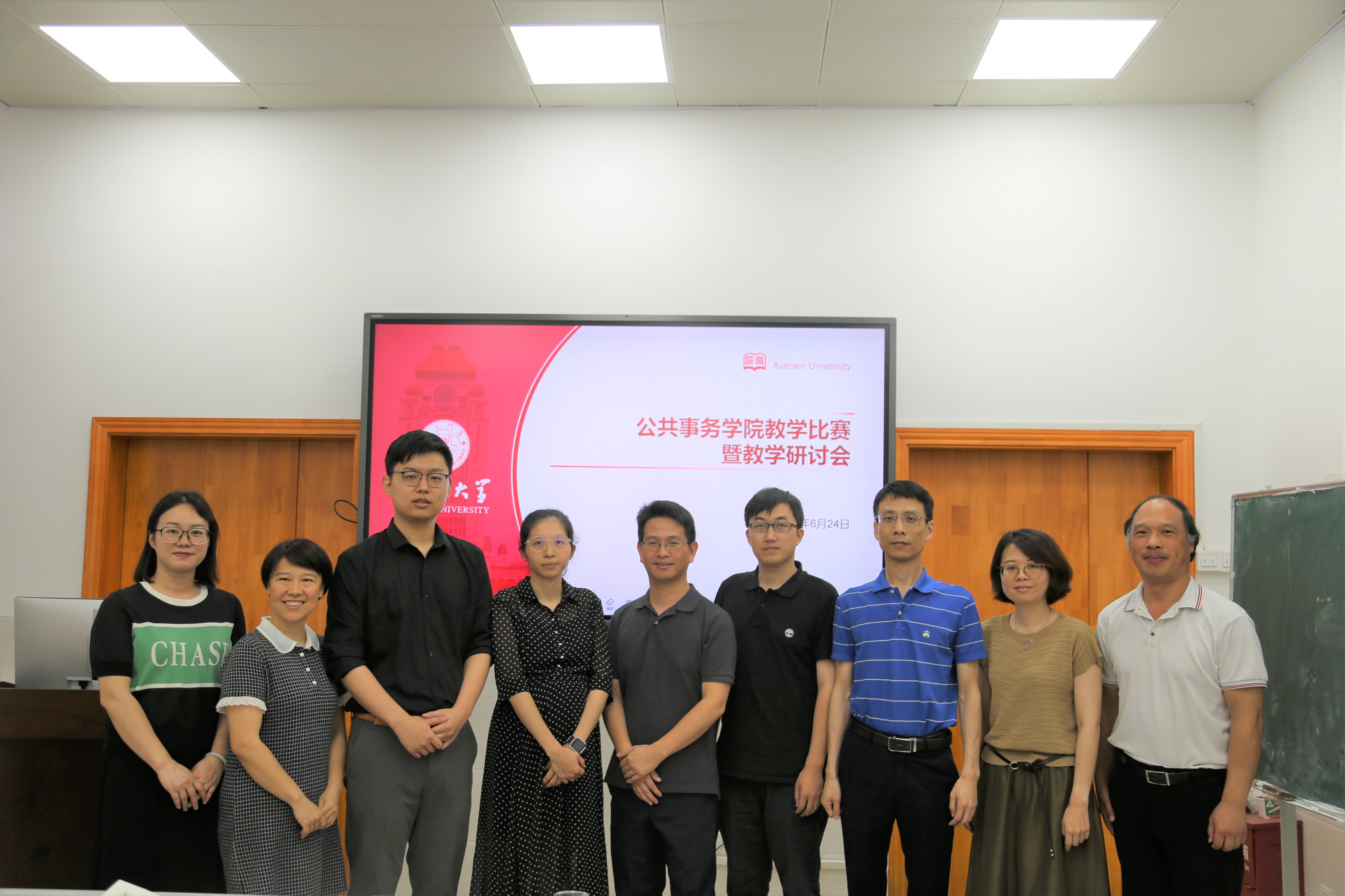 为全面贯彻党的二十大精神,加快推进高质量本科教育,全面建设高素质专业化创新型教师队伍,与时俱进推进“双一流”建设,根据厦门大学第十八届教学比赛工作安排,6月25日上午,厦门大学公共事务学院在成智楼102举办了“公共事务学院2023年教学比赛暨本科教学研讨会”。本次比赛邀请学院党委副书记林盛铨、副院长李艳霞教授、公共管理系副系主任漆亮亮副教授、政治学系副系主任林雪霏副教授、校级教学比赛获奖者周月鹏副教授担任评委,林建政副教授、林菡馨助理教授、任舒怀助理教授以及徐浩助理教授参与此次教学比赛。