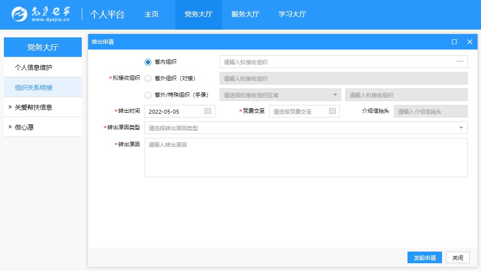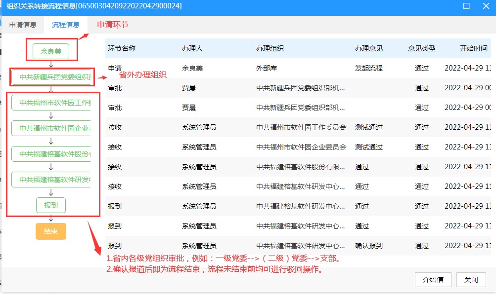 4.同一名党员若存在未办结的转接流程,则不允许重复提交转接申请。